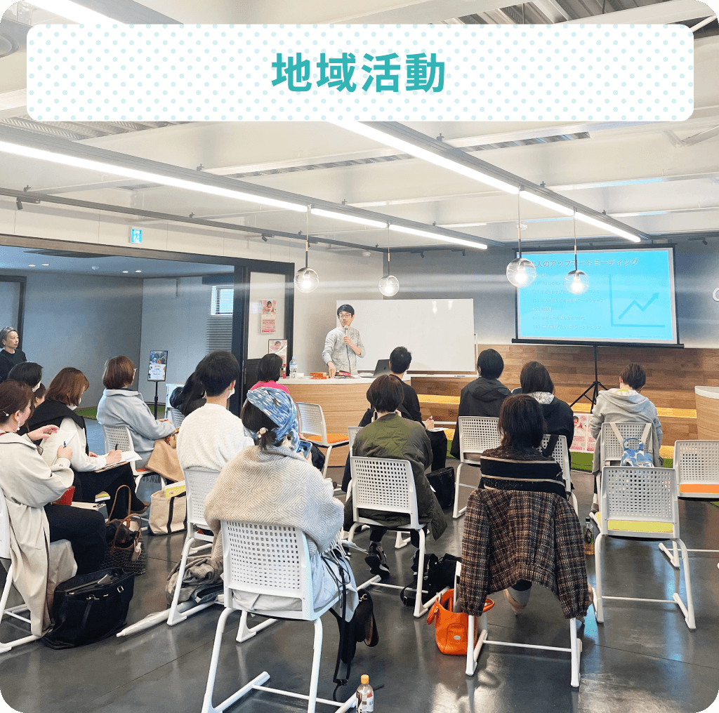 地域のお困りごとを解決する取り組みや、「人が育つ」ことに関する事業にも注力しています。商品にできない野菜を地域に循環する「お野菜プロジェクト」、子育ての悩みを解決するためのワークショップ、子ども主体のフットサル大会「4v4」の開催・運営などを通して、地域と共に歩み続けてまいります。
