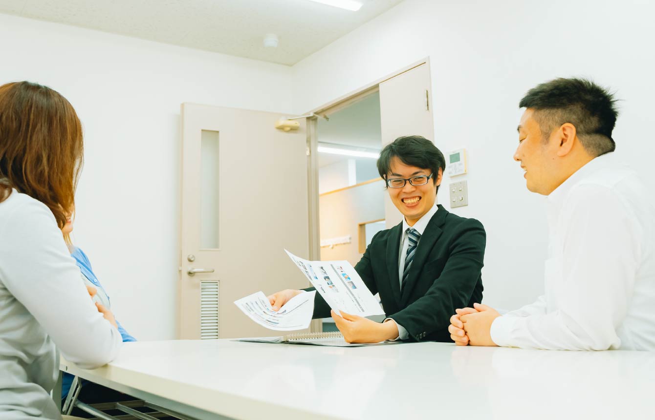 営業としては、求職者の希望に合わせたお仕事の紹介、福祉施設・医療法人への営業や人材紹介、マッチング後の職場見学同行、契約、就業後のサポートと一貫して担当します。求職者の希望条件に合わせて、業務時間などの条件を紹介先のクライアントに交渉し、調整することもあります。