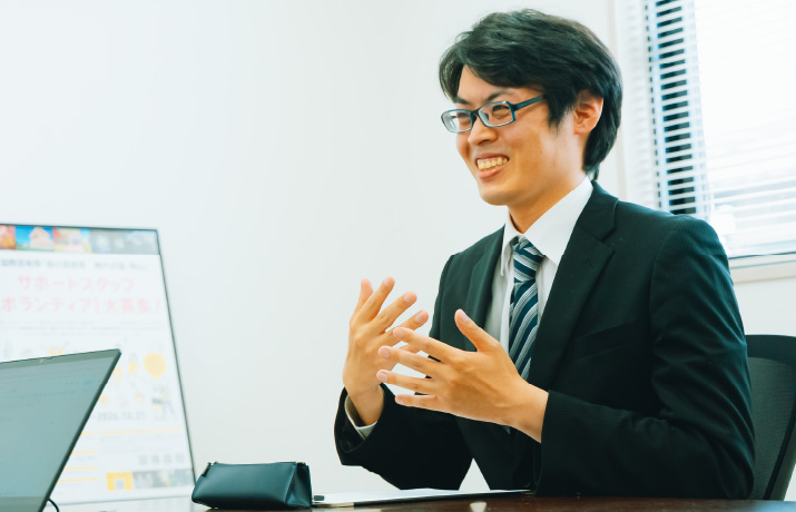 Coaマネジメントは派遣事業の会社ですが、それだけではありません。芸術祭の運営にはじまり、イベント企画、サッカー大会の開催など、多様な事業があり、やりたい仕事に挑戦することができます。自分一人ではなく、営業全員で考えて提案し合える関係性があるので、仕事そのものが面白いです。いろんな仕事に挑戦したい人、お待ちしています