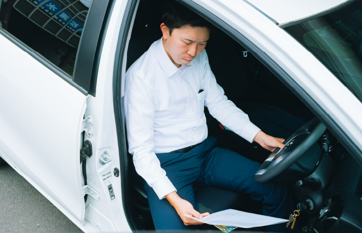 営業担当者には、基本的に社用車を貸与いたします。内勤の方は自家用車での通勤となります。